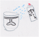 (04)のビンを「さかさま(口を地面)」に置いてスプレーをかけます。 かかってないように見えるけど、時間がたつとくもってきます。