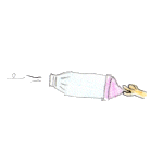 (01)で切った風船を、(02)のペットボトルにかぶせる。