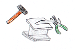 (03)で熱した釘を、鉄の台の上におきトンカチで叩きます。